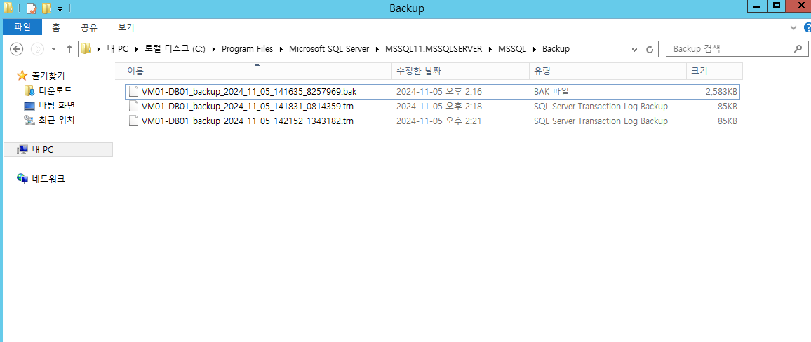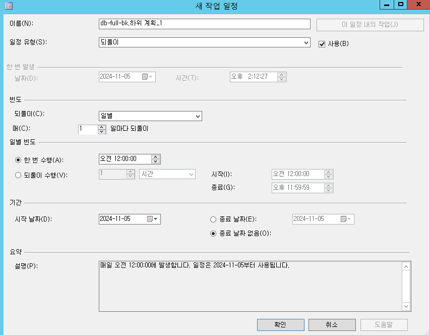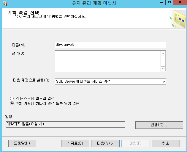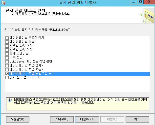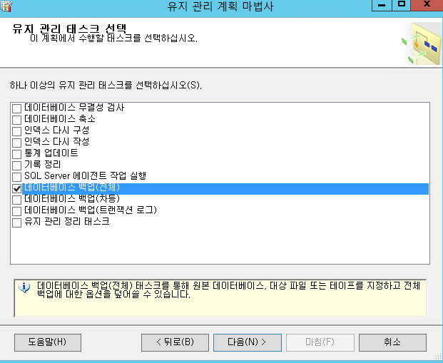 db full 백업 과 동일하게 다음, 다음, 다음, 마침