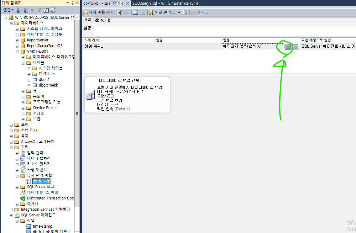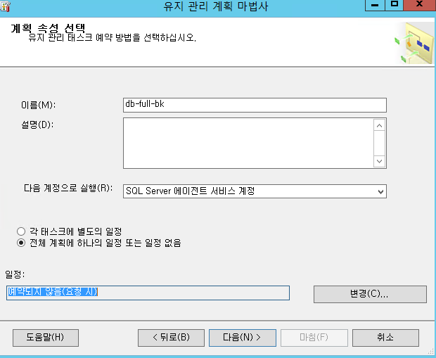 2. 관리 -> 유지 관리 계획 -> 유지 관리 계획 마법사 -> DB full 백업 스케줄 생성