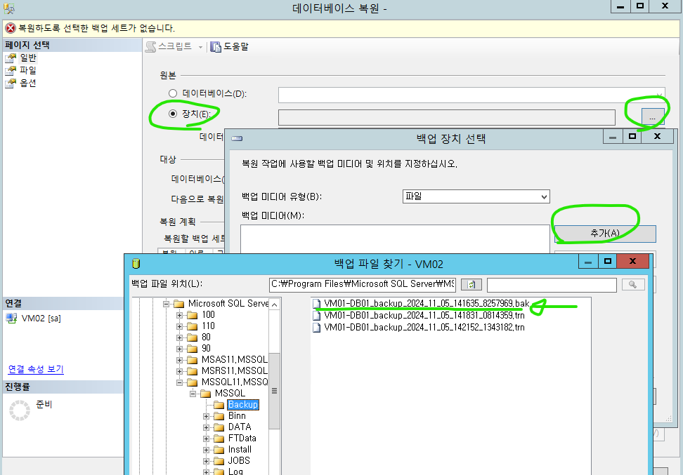트랜잭션 로그를 순차적으로 복원해야하므로 가장 오래된 .trn 파일 부터 선택