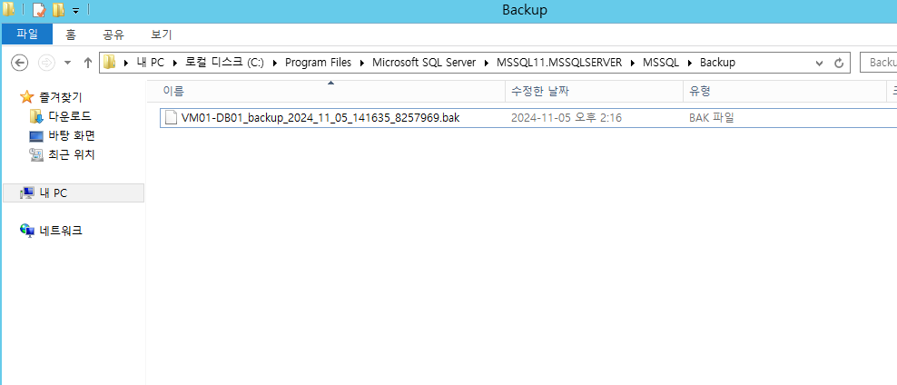 db full 백업 즉시 실행 테스트