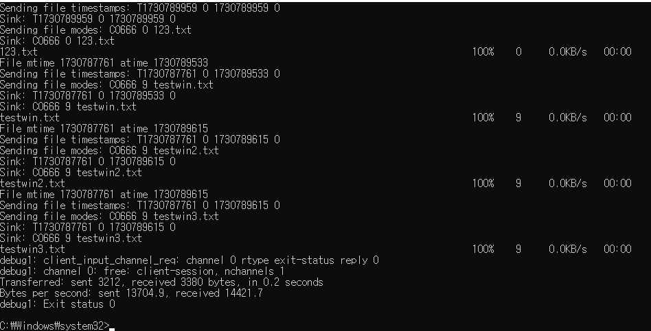 이후 윈도우에서 scp 테스트