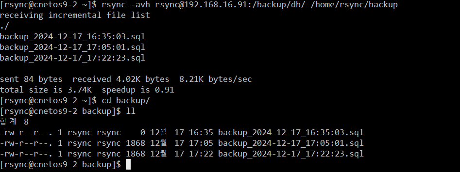 rsync -avh rsync@192.168.16.91:/backup/db/ /home/rsync/backup
