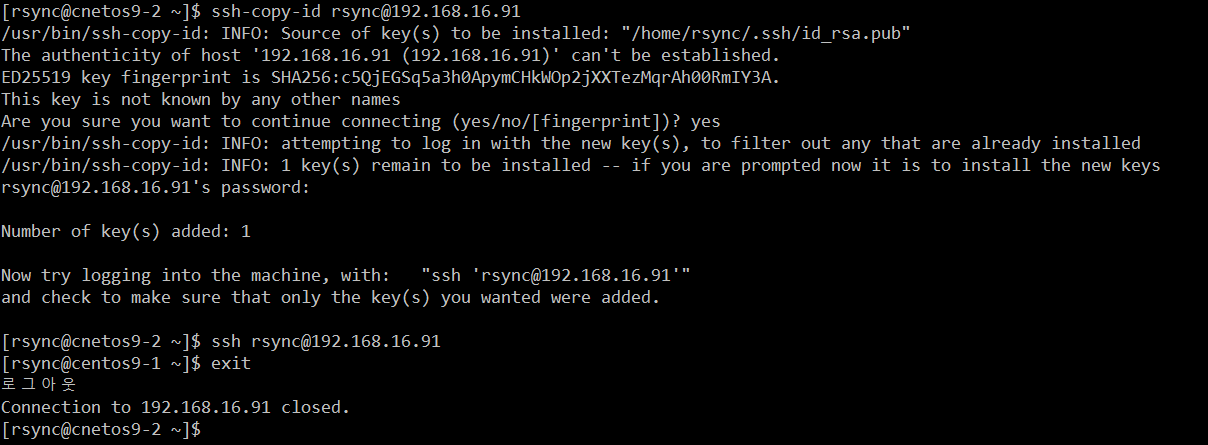 ssh-copy-id 로 키값 자동 전달 및 ssh 연결 테스트