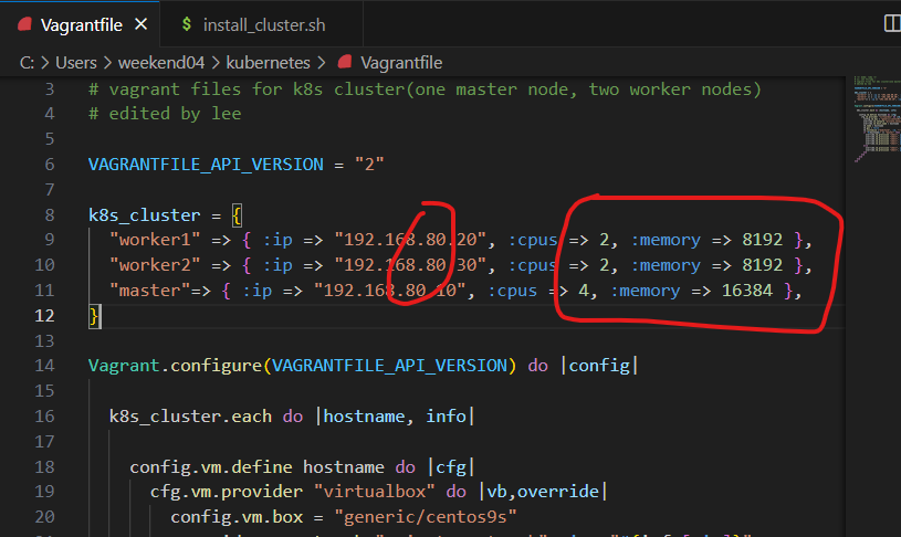 vagrant 로 k8s 을 설치하기 위해 파일 수정