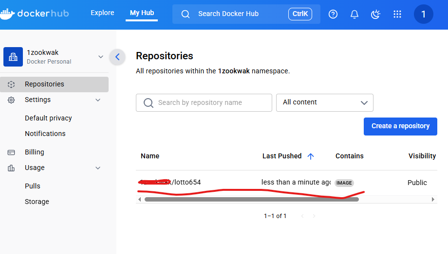 docker push [사용자ID] /lotto654:1.0